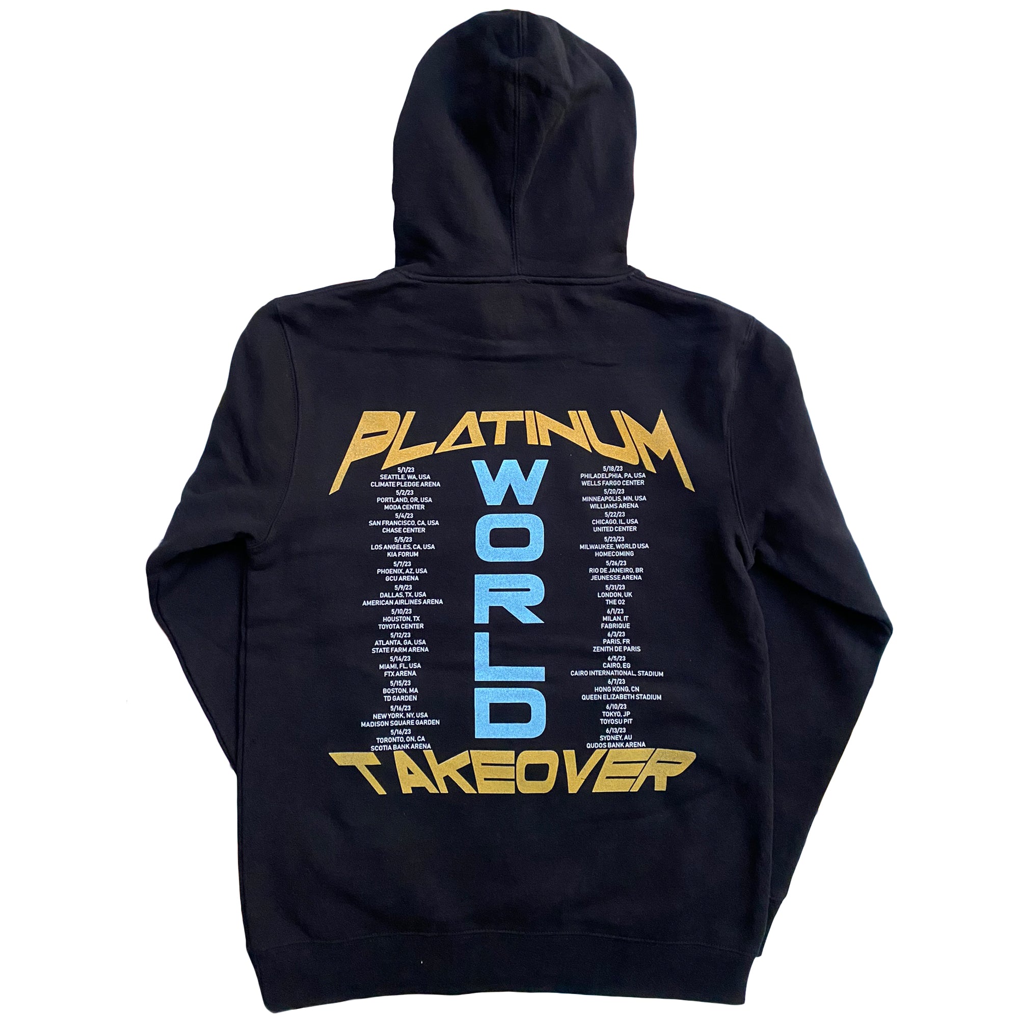 We had to pay homage to our hometown of Milwaukee, Wisconsin. We put up some Milwaukee landmarks that we grew up seeing along with some Platinum flavor. On the back we wanted to this to have a concert tour merch vibe, so we put every city we would hope to get to in the United States and around the World, along with dates at every major arena within said city. 2023 is the year of the Platinum World Takeover!