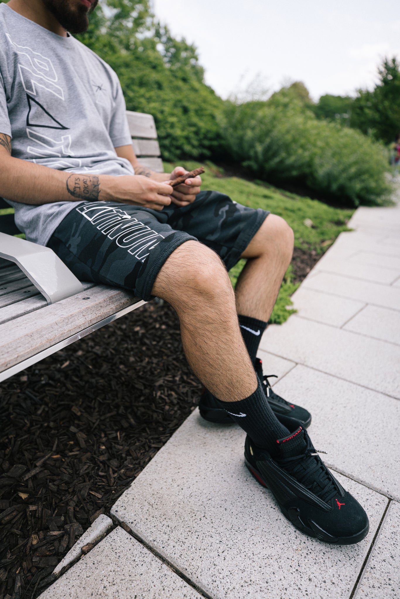 Platinum printed going down the right side of shirt